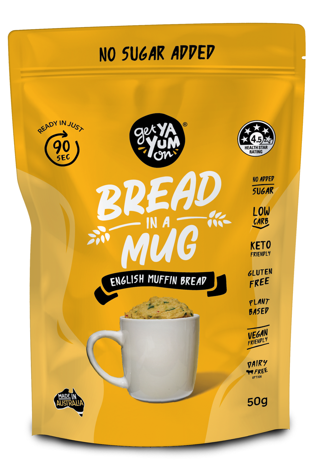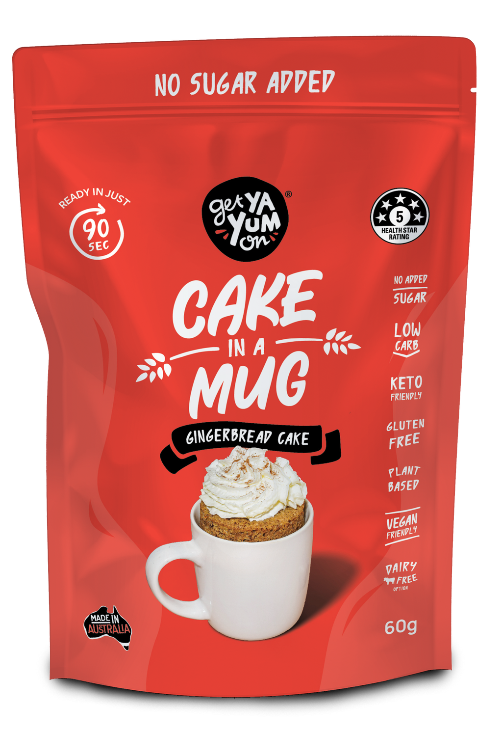 That’s why at GET YA YUM ON we’ve create a range of guilt free – good for you bake mixes that can be baked in the microwave in just 90 secs (or just 10 mins in a conventional oven)