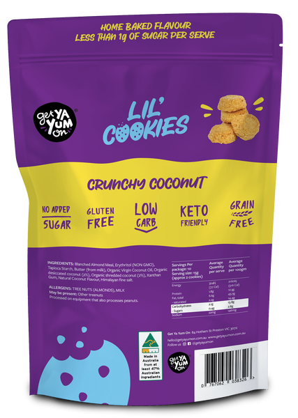 🥥 Crunch into coconut bliss! 🌴 Now in a NEW sharepack size—our Lil Cookies are crispy, chewy, and packed with real coconut flavour. Sugar free, gluten free & totally guilt-free!